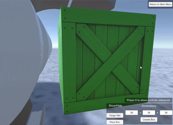 The freight’s color changes green when selected and either yellow or red when colliding with adjacent freight or aircraft walls. This aids the user in making sure the freight will fit with a fair margin.